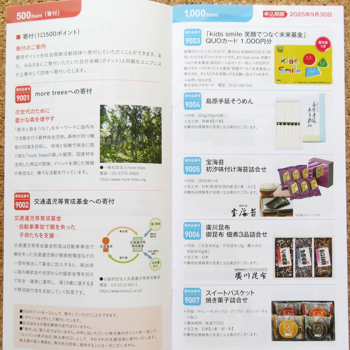 例えば1,000pointの優待品