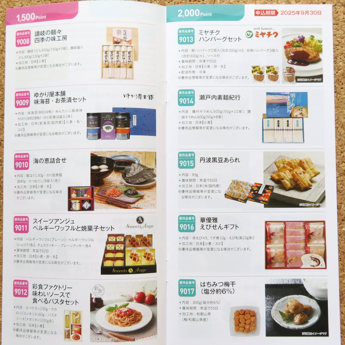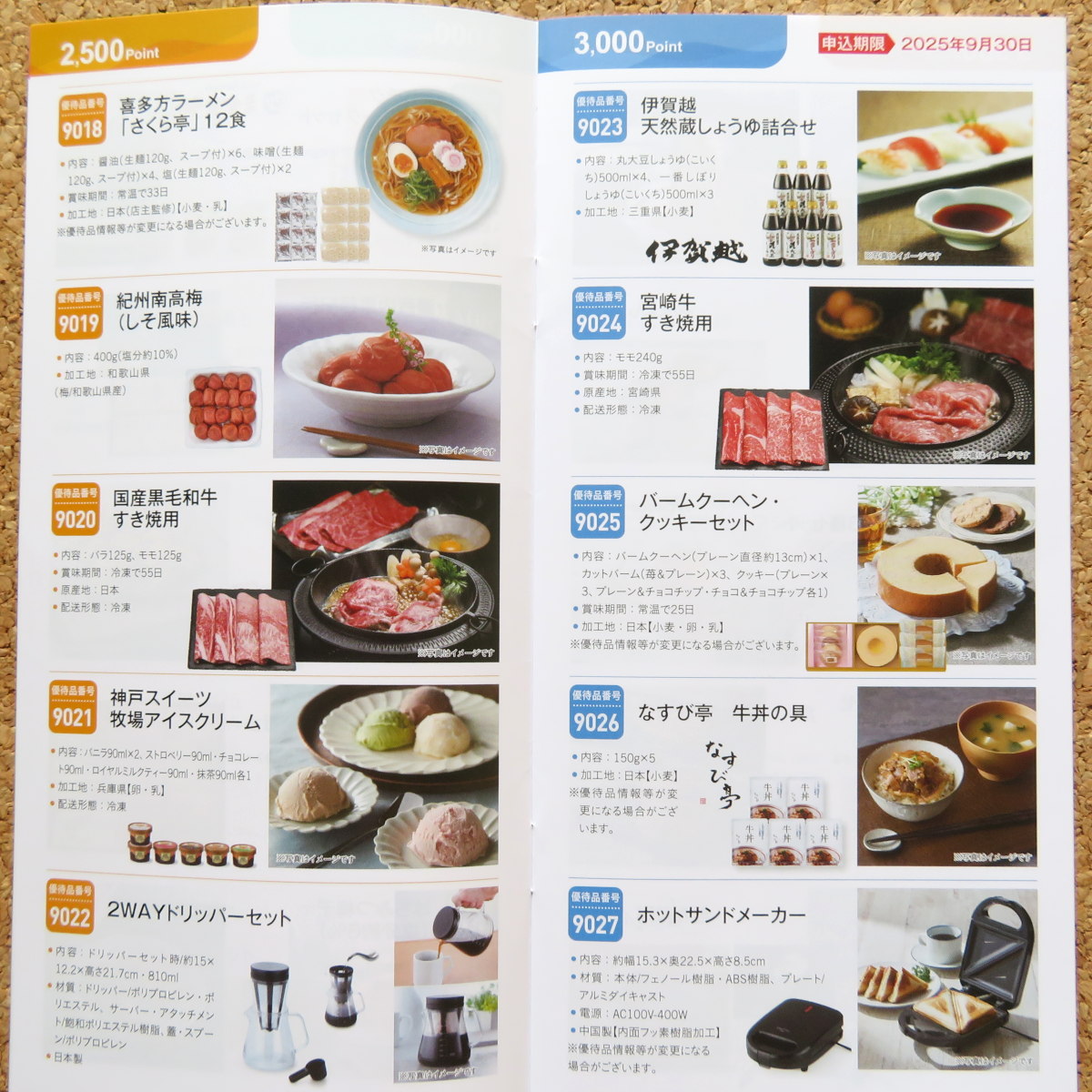交換品のラインナップは、ギフトカタログで割とよく見るものが多い印象です。